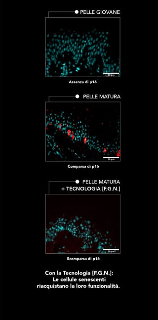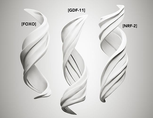 Dopo 10 anni di ricerca, i nostri laboratori hanno identificato 3 proteine messaggere responsabili dell'invecchiamento cutaneo: FOXO, NRF-2 e GDF-11.