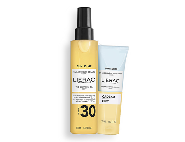 - L’Olio Solare Setoso SPF30: offre un’elevata protezione grazie al suo sistema filtrante ad Ampio Spettro, che combina filtri organici [UVB + UVA] con un complesso di attivi anti-luce blu e infrarossi. Aiuta a prevenire i danni cutanei e i segni del foto-invecchiamento (rughe, macchie, perdita di tonicità) per un’azione anti-età globale. L’olio ultra-sensoriale dal tocco secco sublima e illumina l’abbronzatura. La sua fragranza iconica, solare e avvolgente, con note fresche e irresistibili di acqua di cocco, bergamotto e gelsomino, lascia sulla pelle un profumo incantevole.